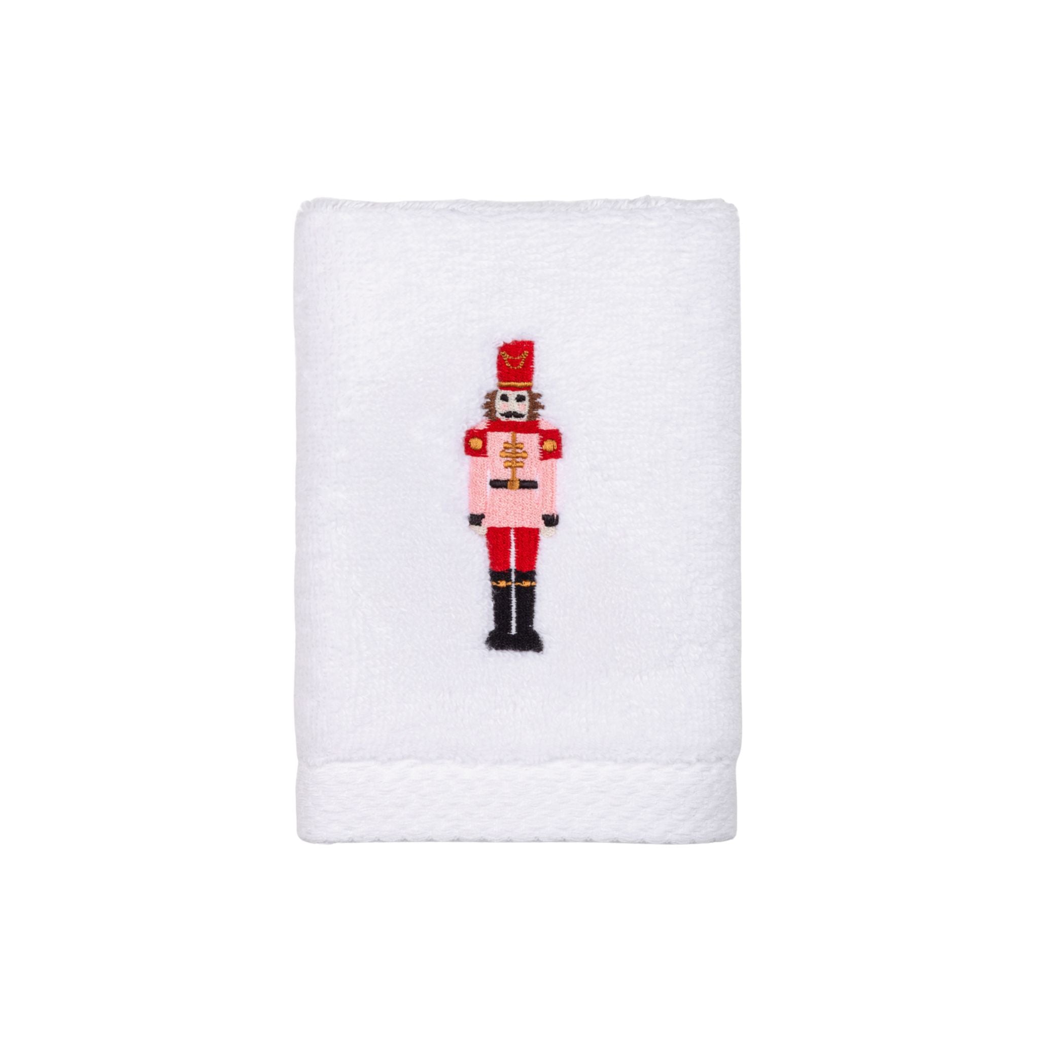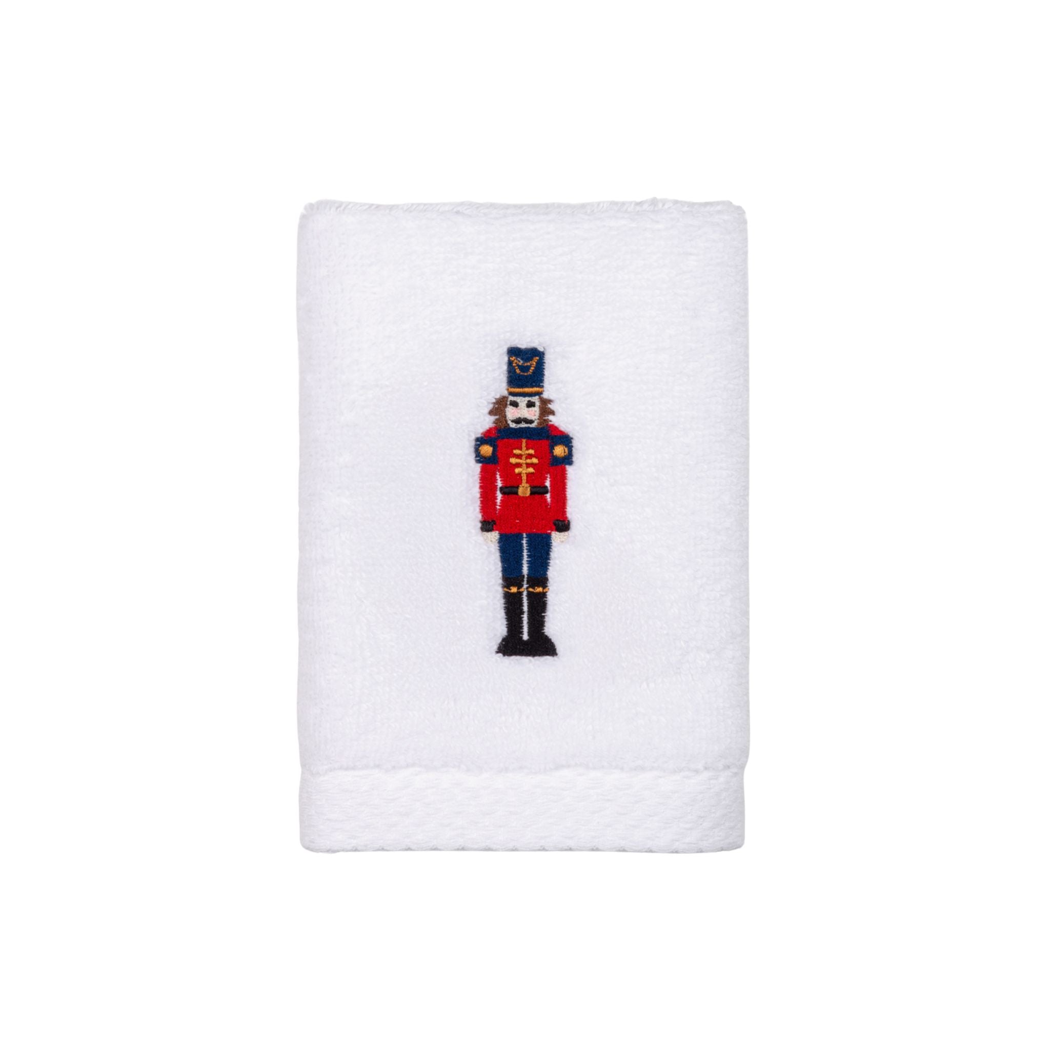 Face towel with nutcracker embroidery