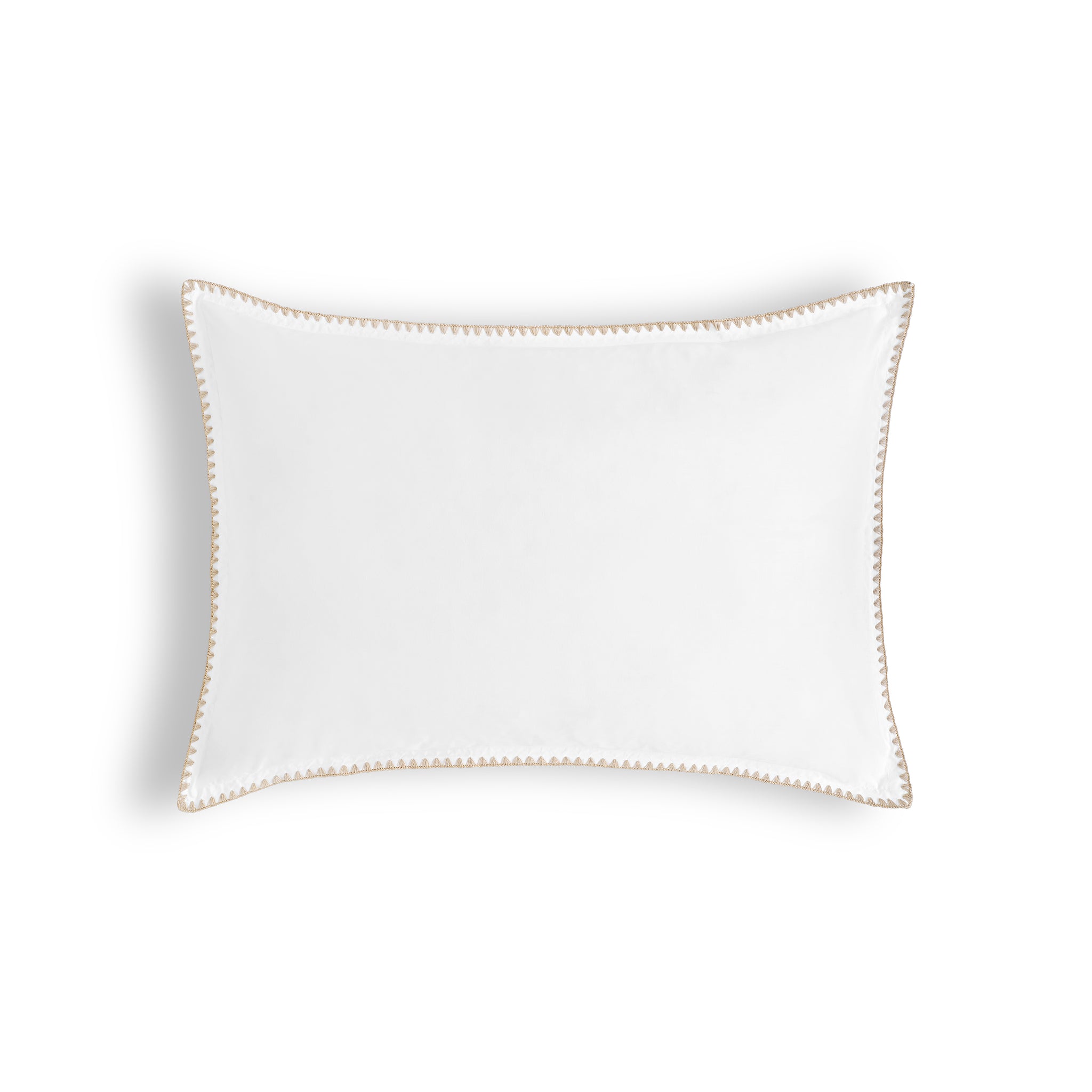 Pillowcases have 2 cm flaps on all four sides, finished with a shell stitch.