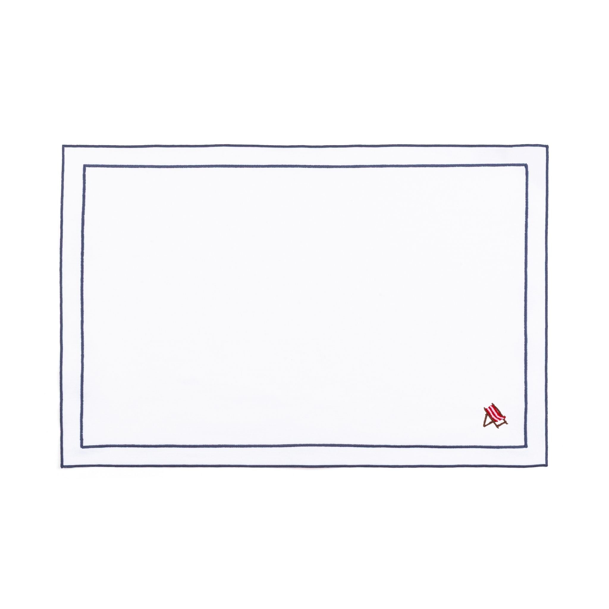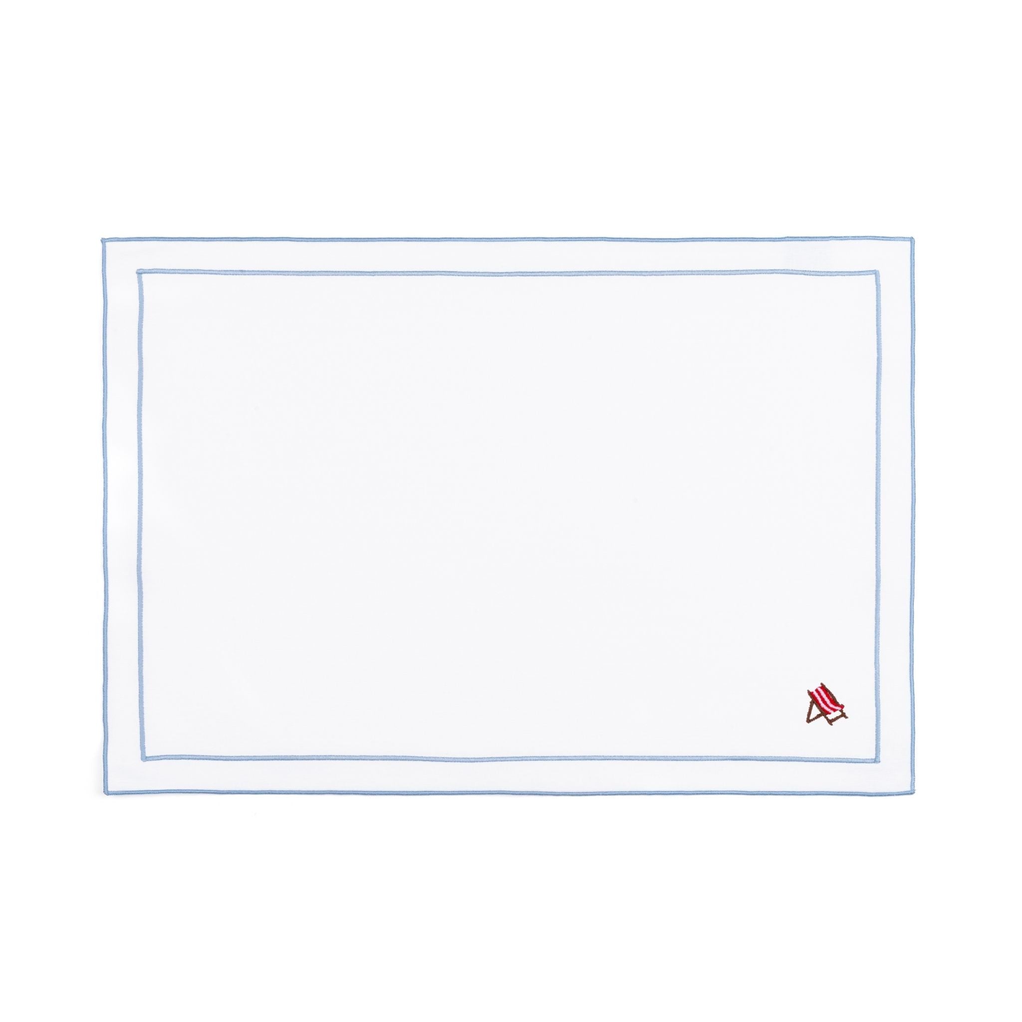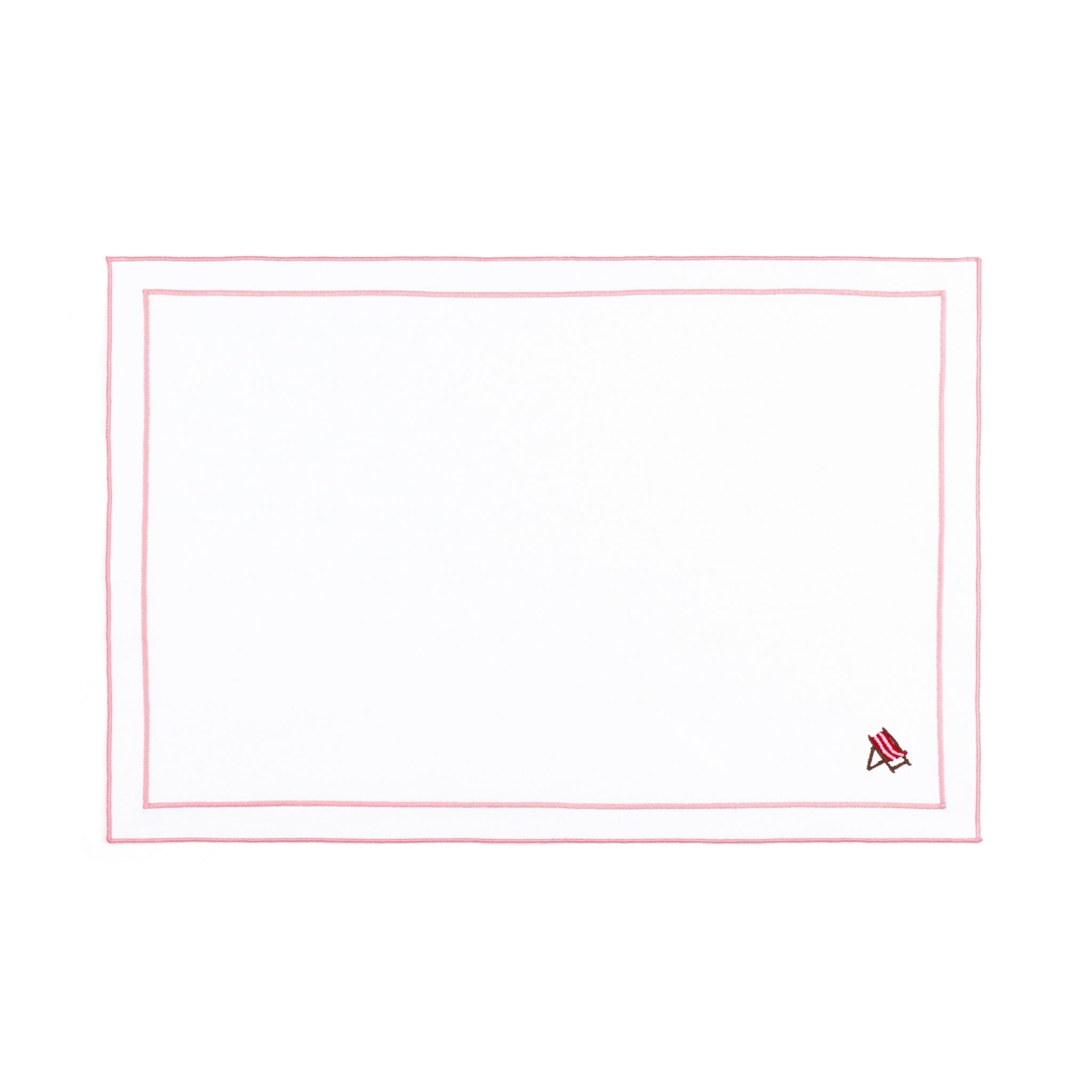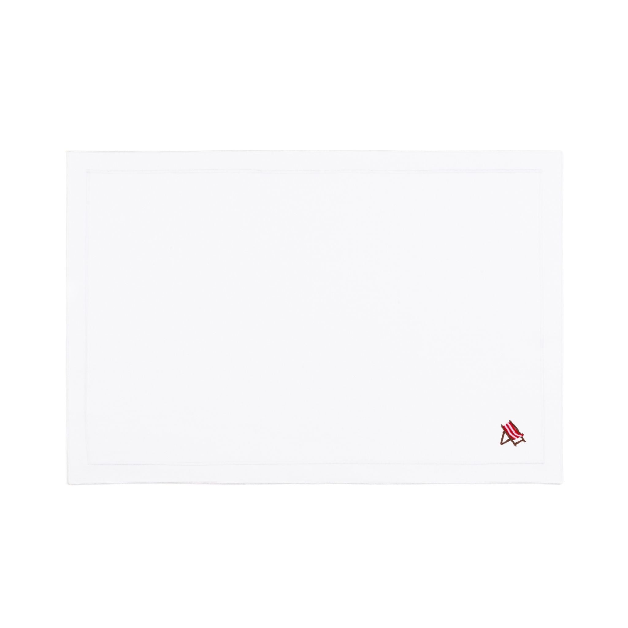 These napkins, cocktail napkins, and placemats feature 4 designs - a palm tree, a seagull, a crab, and a beach chair - inspired by carefree beach days.